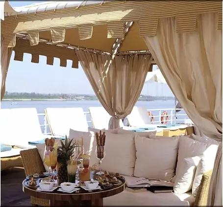 Crucero de Gran Lujo por el Nilo a bordo del exclusivo Sanctuary Sun Boat IV ofrece una experiencia refinada entre Luxor y Asuán, con programas de 3, 4 o 7 noches. El barco dispone de cinco cubiertas, 36 cabinas elegantes, además de 2 suites presidenciales y 2 suites reales con salón privado.
