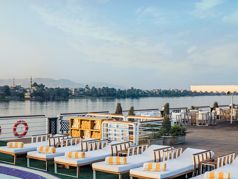 A bordo, encontrarás una amplia gama de servicios y hospitalidad de lujo, pensados para que cada momento de tu viaje sea inolvidable. Desde gastronomía gourmet hasta áreas de relax y entretenimiento nocturno, el crucero combina historia, cultura y confort para ofrecerte una experiencia única en Egipto.