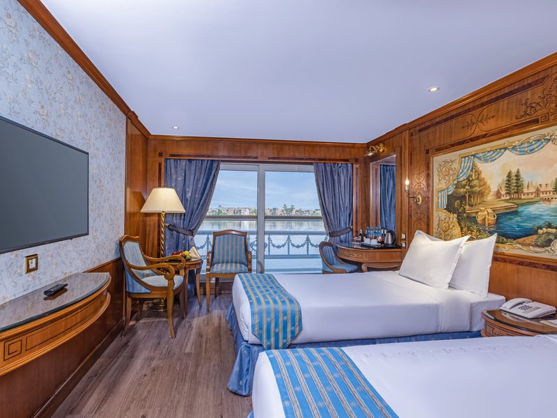 El Crucero de Lujo Sonesta St. George se destaca como una de las experiencias más exclusivas en el Nilo. Cada cabina y suite está diseñada con muebles de alta calidad y equipada con comodidades de primera clase, garantizando una estancia de máximo confort mientras disfrutas de las vistas del majestuoso río.