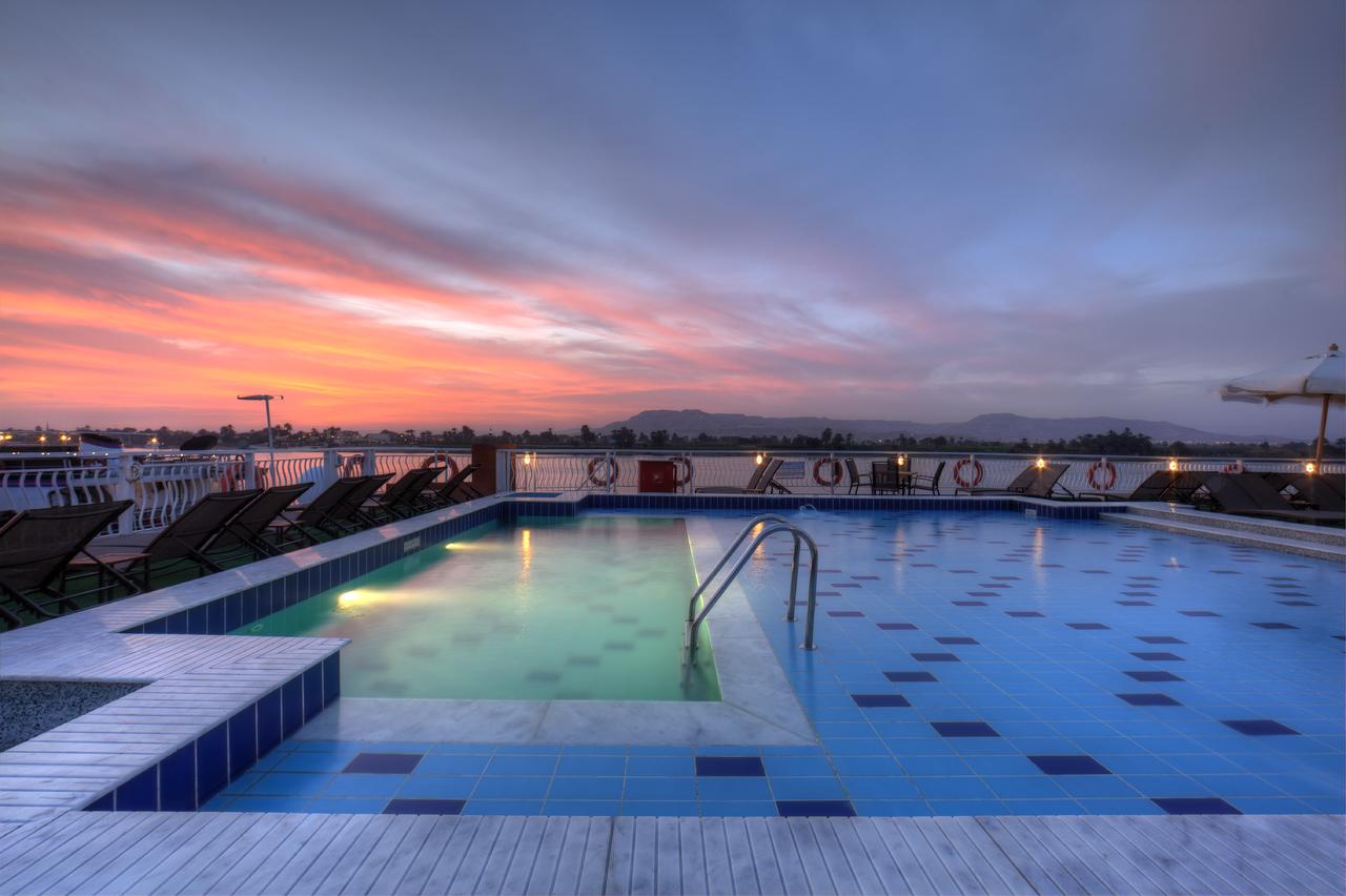 El Crucero Por el Nilo de Lujo Steigenberger Minerva cuenta con instalaciones como piscina, solárium, bar, recepción 24 horas, cabinas con aire acondicionado y baño privado, Wi-Fi y entretenimiento a bordo para una experiencia confortable.