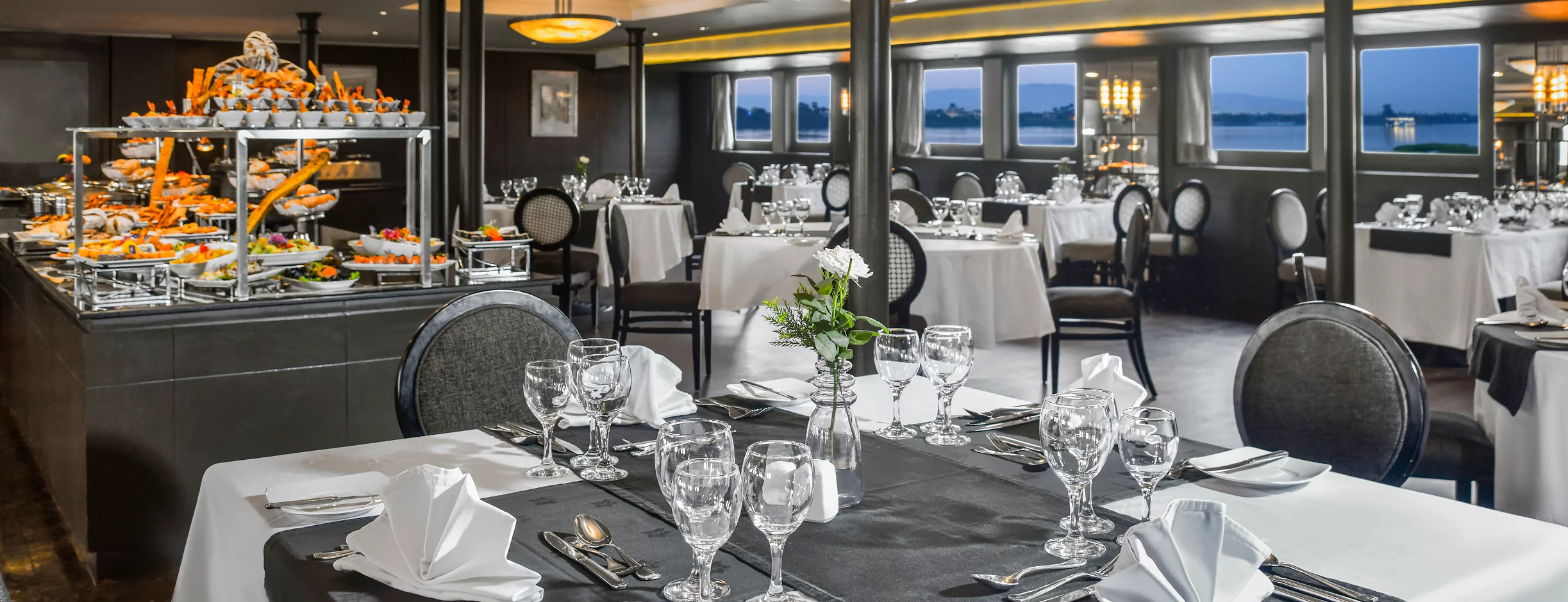 Finaliza el día con una cena elegante y descanso en tu camarote, preparando tu visita al Este de Luxor al día siguiente, continuando tu Crucero por el Nilo de lujo entre Asuán y Luxor.