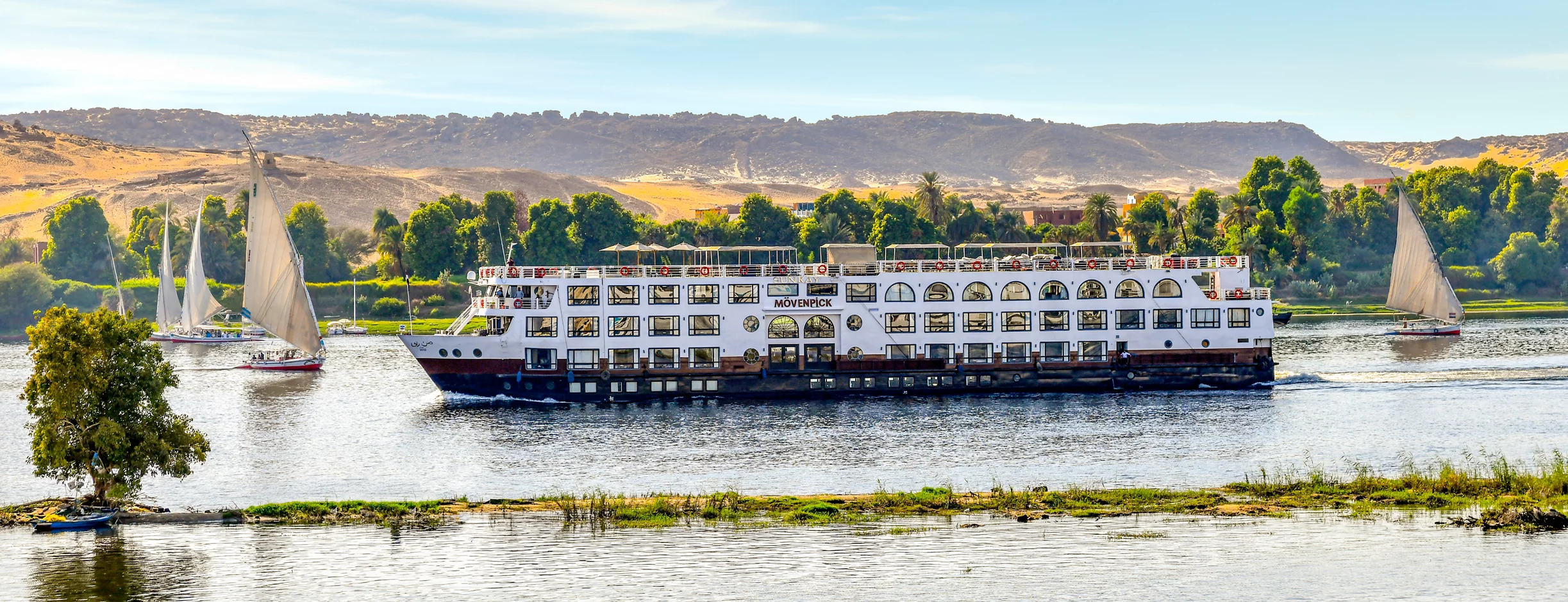 Descubre la majestuosidad de Egipto a través de imágenes del Crucero por el Nilo del lujo Mövenpick MS Sun Ray, explorando templos, monumentos y paisajes únicos a bordo de un crucero de lujo incomparable.
