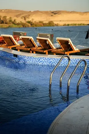 Finaliza el día embarcándote en el Crucero por el Nilo Nile Premium, donde disfrutarás de un almuerzo a bordo, momentos de relax en la piscina o terraza, y una cena exquisita mientras contemplas el majestuoso Nilo, dando inicio a tu experiencia de lujo y aventura por el Alto Egipto.