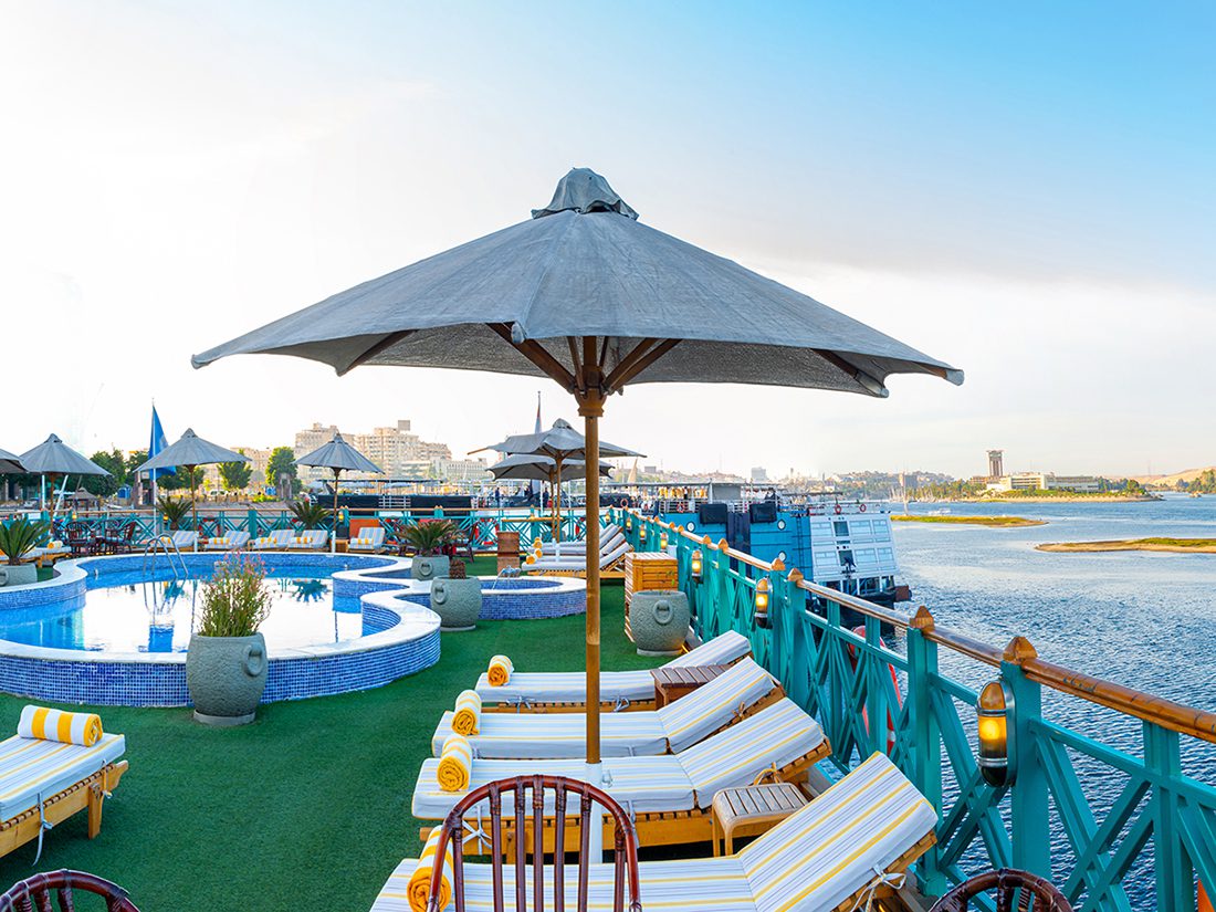 A bordo podrás disfrutar de fiestas, piscina y zonas de relax, además de vivir la experiencia de visitar algunos de los monumentos más emblemáticos del Antiguo Egipto, convirtiendo tu viaje en una travesía inolvidable.