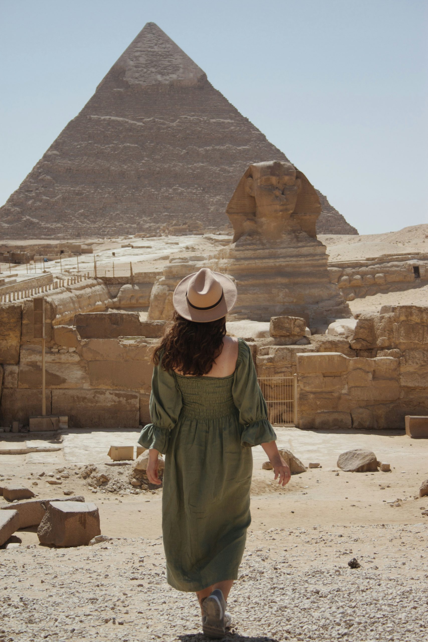 A pocos pasos, admira la Gran Esfinge de Guiza, tallada en un solo bloque de piedra, con cuerpo de león y rostro humano, símbolo de fuerza y sabiduría divina, considerada manifestación terrenal del dios solar Ra.