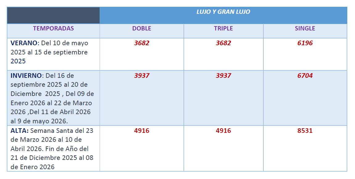 Por favor, tenga en cuenta que en WAAD INTERNATIONAL TRAVEL trabajamos exclusivamente con servicios de categoría superior, seleccionados minuciosamente para garantizar lujo, confort y una calidad excepcional en cada etapa de su viaje.