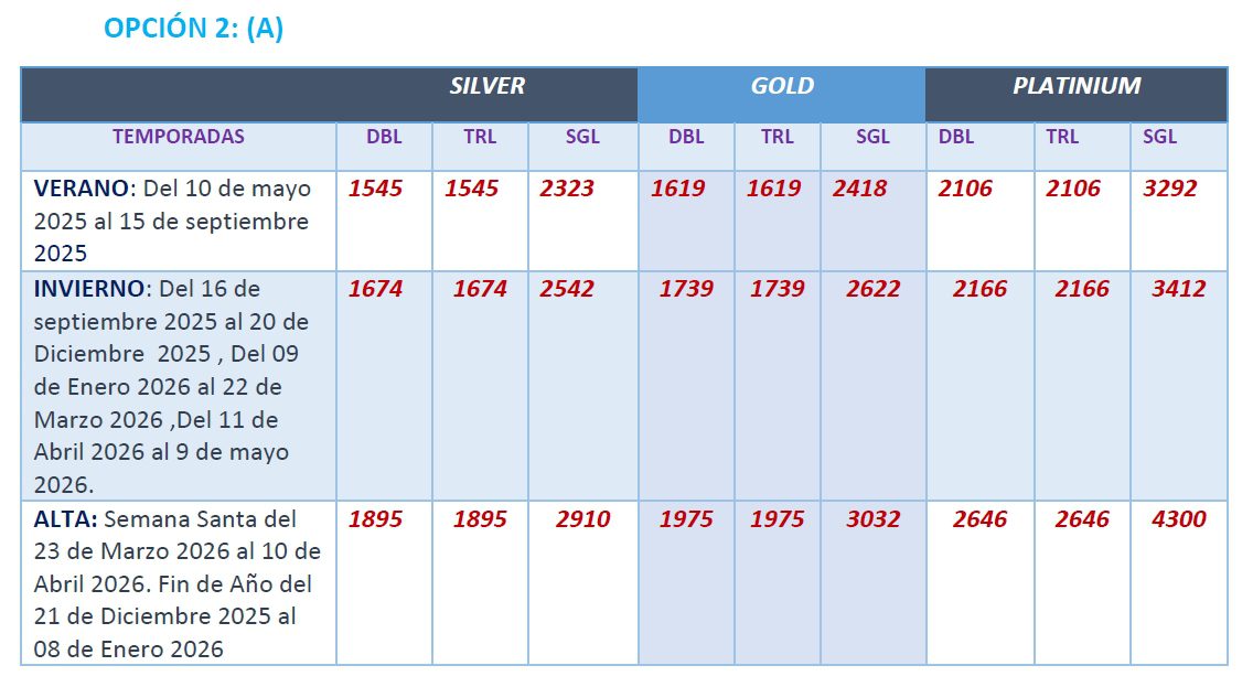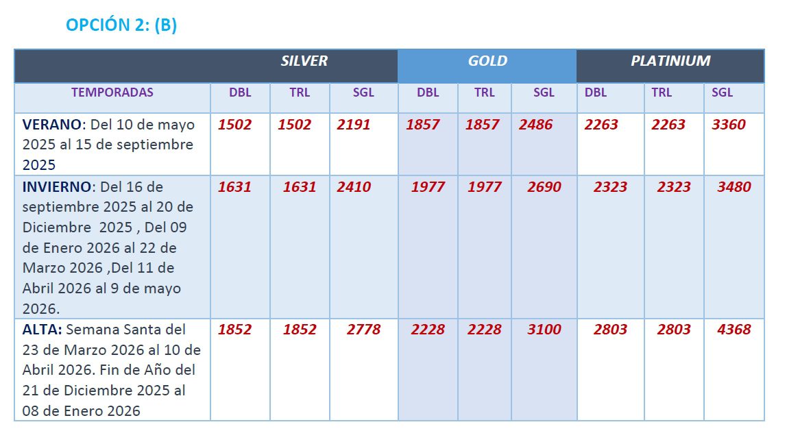 Durante Nochebuena y Nochevieja, algunos hoteles 5★ Superior Platinum podrían requerir Cena de Gala obligatoria.