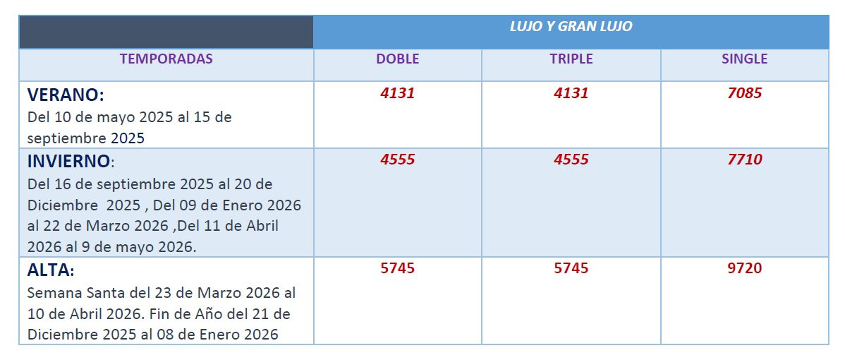 Por favor, tenga en cuenta que en WAAD INTERNATIONAL TRAVEL trabajamos exclusivamente con servicios de categoría superior, seleccionados minuciosamente para garantizar lujo, confort y una calidad excepcional en cada etapa de su viaje.