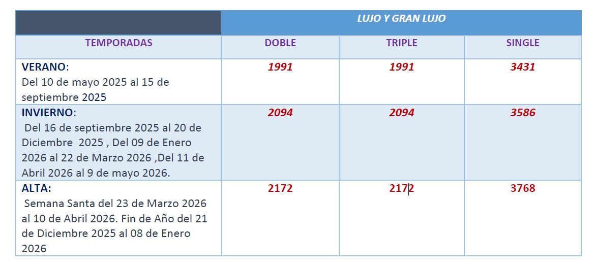 ✅ Todas las excursiones y entradas incluidas según el itinerario.